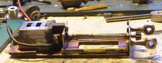 In order to fit all this in, I had to make a front engined chassis using brass and PCB material. Because of the very short nose of the car, I aslo had to shorten a Riko motor, so that the guide did not stick out the front. As a result of shortening, the motor ran very hot, it took me ages to get it to run cooler, I was so worried that I actually modified the guide mount, so that I could use a standard motor as well, just in case. I used the long motor in practice, switching to the short motor for concours and the race. Compared to most other people there, I am very new to slot racing, and shortening motors is not what I do best, this was my first scratchbuild chassis and modified motor.